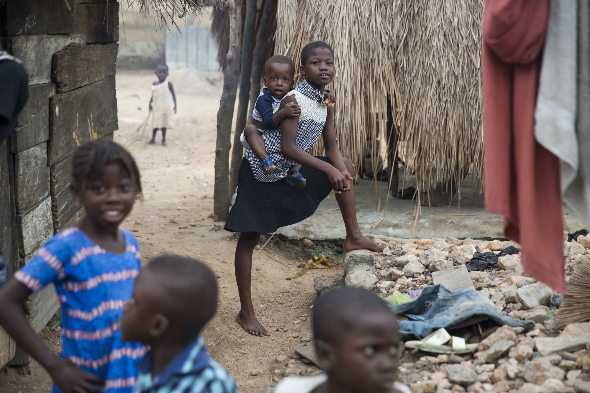 As we combed the village, we watched a group of women and their daughters make soup for their family and a man chop away at what seemed like small pieces of wood, but could have easily been leftover bones from a carnivorous lunch. We observed an elderly man mend a fishing net as his dog kept him company, a seven year-old do the daily dishes over a pile of rocks, a chuckling woman braid another’s hair, two young boys attempting to sell dried fish from perfectly balanced metal platters resting on their heads, and a pair of baby goats posing against a blue wall.